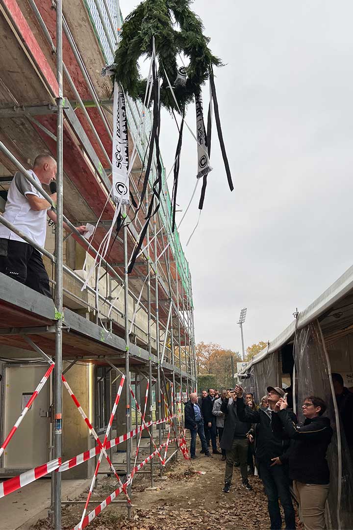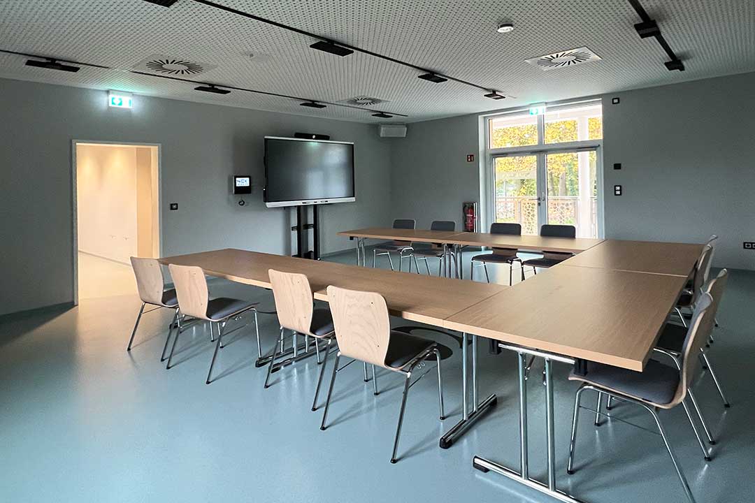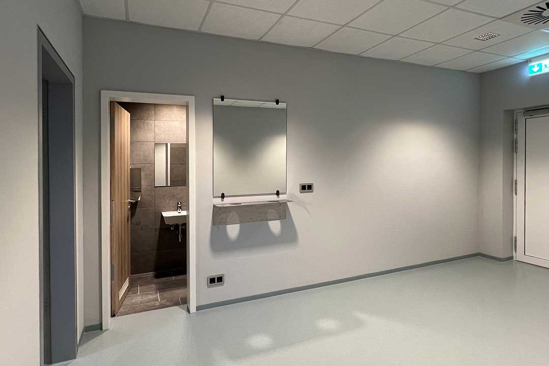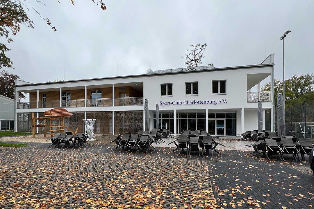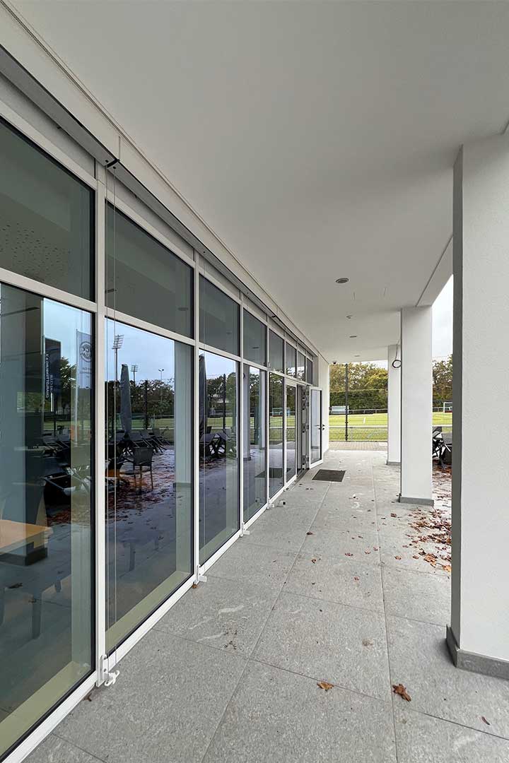 Die Sporthalle ist direkt mit dem denkmalgeschützten, neu sanierten Sport- und Kurshaus (ehemals AOK-Gebäude) verbunden. Hier wurden die Räume im Keller auf Erdgeschossniveau als Umkleide- und Sanitärräume umgebaut.